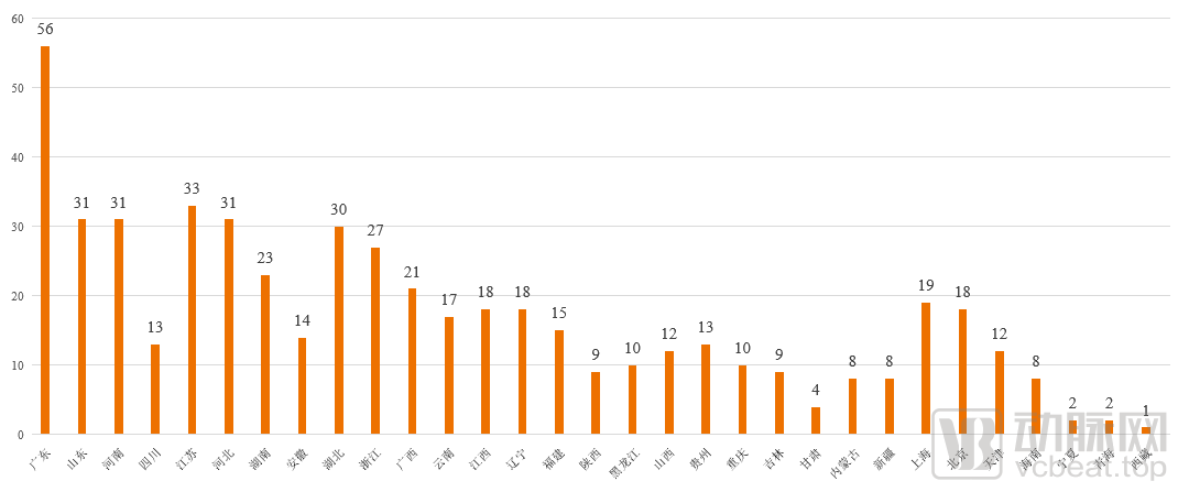 中国辅助生殖机构数量/家(截至2020年6月30日)