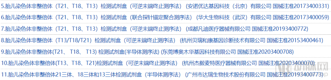 NMPA批准的NIPT产品(截图自NMPA官网)