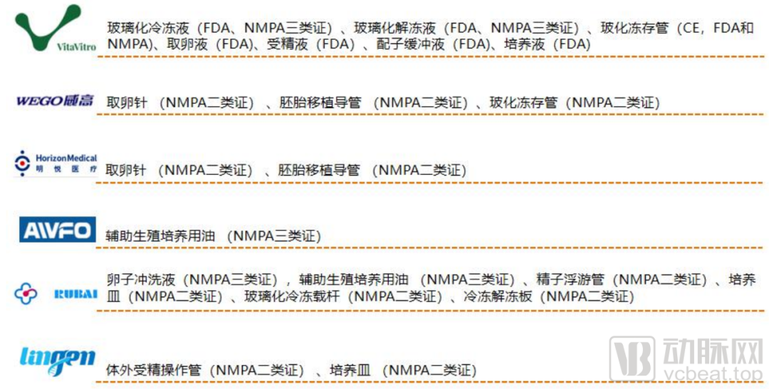 国内IVF医疗器械企业产品获证情况