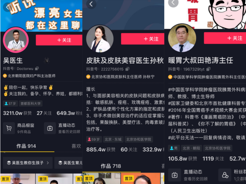 然而短视频时代的到来让医学科普这个“老古董”有了新的生机。当前,不少医生开始通过线上平台进入到大众的视野之中,也相继涌现出了张文宏、孙秋宁、嵇玉蓉等一批“网红”医生,他们聚焦于某一专业领域,用通俗的语言、丰富的形式分析专业观点,从另一个维度加深医生与患者的交流互动。