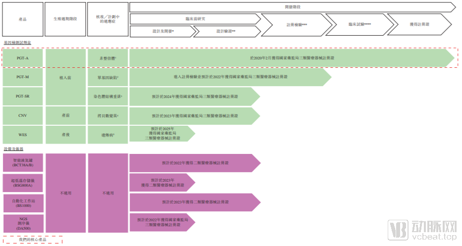 在这些产品中,PGT-A试剂盒针对35岁或以上进行试管婴儿治疗的女性、经历三次或以上试管婴儿治疗失败的夫妇、出现三次或以上自然流产或异常妊娠的夫妇、曾生育有染色体异常患儿的夫妇或存在染色体数值交替的夫妇;PGT-M针对地中海贫血携带者;PGT-SR针对染色体互相易位、罗伯逊氏易位或倒位的携带者;CNV针对曾经流产的患者;WES针对200多种遗传病的携带者。