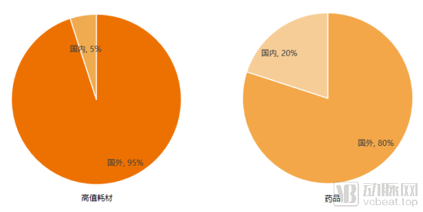 辅助生殖高值耗材和药品国内/国外市场份额占比